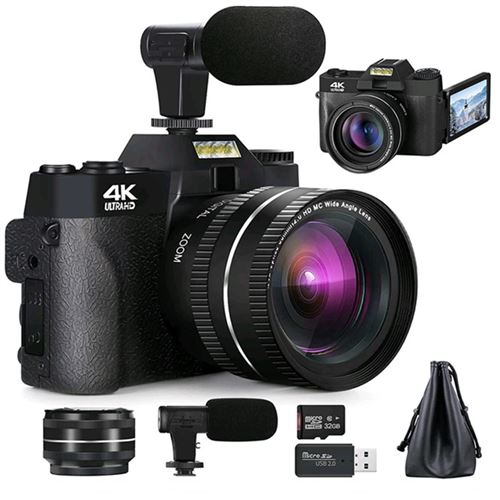 NBD Vlogging Camera Appareil Photo numérique 4K 48MP pour la Photographie, avec écran Rabattable, Mise au Point Automatique, Zoom numérique 16X, Carte TF 32 Go (Noir) quantity